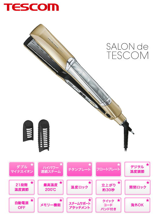 \ページ限定・マジッククロス付/ ストレートヘアアイロン 海外対応 【送料無料・保証付】【テスコム マイナスイオンスチームヘアーアイロン TTH2650-N】